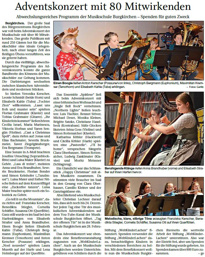 Musikschule Burgkirchen spendet Erlös vom Adventskonzert an WeltKinderLachen